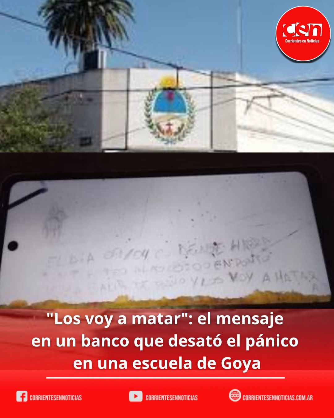 La aparición de un mensaje intimidatorio dentro de un aula generó un fuerte operativo de seguridad y una marcada caída en la asistencia escolar este jueves. La Policía de Corrientes realiza peritajes caligráficos para identificar al autor, mientras el establecimiento permanece bajo custodia preventiva. La comunidad educativa de Goya se encuentra en estado de alerta tras el hallazgo de una inscripción con amenazas de muerte en el mobiliario de la Escuela Técnica “Arq. Francisco Pinaroli”. El hecho, que inicialmente fue tratado como una posible broma de mal gusto, ha escalado a una investigación penal debido a la gravedad de los términos utilizados y el clima de sensibilidad actual respecto a la violencia escolar. Cronología del hallazgo El suceso se dio a conocer a través de la denuncia de una madre, cuya hija advirtió el mensaje en el salón de clases: El Contenido: El texto advertía explícitamente sobre un tiroteo programado para el jueves 09/04 a las 08:00 hs, detallando que el atacante saldría de los sanitarios para agredir a los presentes. Acción Directa: La rectoría del establecimiento procedió a la inspección inmediata del aula, el registro fotográfico de la evidencia y la radicación de la denuncia formal ante las autoridades correspondientes. Intervención Policial y Peritajes Dada la implicancia de menores de edad y la naturaleza del riesgo, la causa ha seguido un estricto protocolo judicial: Organismo IntervinienteAcción RealizadaComisaría de la Mujer y el MenorRecepción inicial de la denuncia y protocolos de niñez.Comisaría Primera (Goya)Inicio de la causa penal y coordinación de custodia.Peritos CalígrafosLevantamiento de rastros y análisis de la escritura en el banco.Cuerpo de SupervisoresSeguimiento administrativo y pedagógico del caso. Los especialistas en criminalística realizaron evaluaciones sobre el trazo y la caligrafía hallada con el objetivo de cotejarla con los registros de los estudiantes del curso afectado, buscando identificar si el autor pertenece a la institución. Impacto en la Comunidad y Medidas Preventivas A pesar de que el plazo fijado en la amenaza (las 08:00 hs del jueves) transcurrió sin incidentes, el impacto social fue contundente: Ausentismo: Más del 50% de los padres decidió no enviar a sus hijos a clases durante la jornada del jueves como medida de resguardo personal ante la incertidumbre. Custodia Activa: La Policía de Corrientes dispuso una consigna permanente en los accesos al edificio escolar para garantizar la seguridad de quienes decidieron asistir y del personal docente. Abordaje Institucional: Las autoridades escolares han remarcado que, independientemente de si se trata de una “broma” o una amenaza real, se aplicarán las sanciones máximas previstas en el código de convivencia una vez identificado el responsable. La investigación permanece abierta y las clases continúan bajo un esquema de vigilancia reforzada, a la espera de los resultados de las pruebas caligráficas que permitan llevar tranquilidad a las familias goyanas. Post Views: 3 Navegación de entradas Localización en Tabay: Hallan a una joven que era buscada desde hace seis años